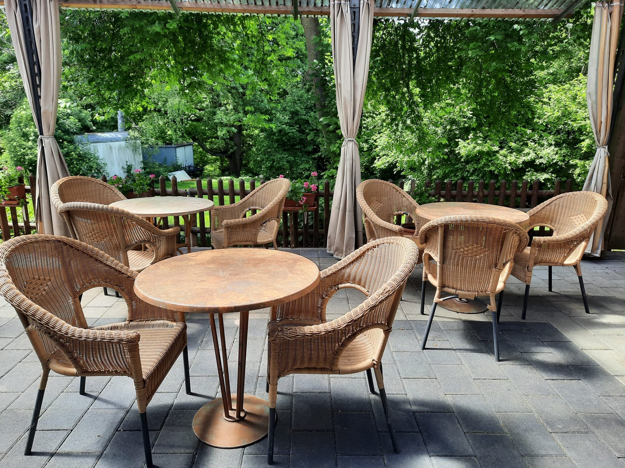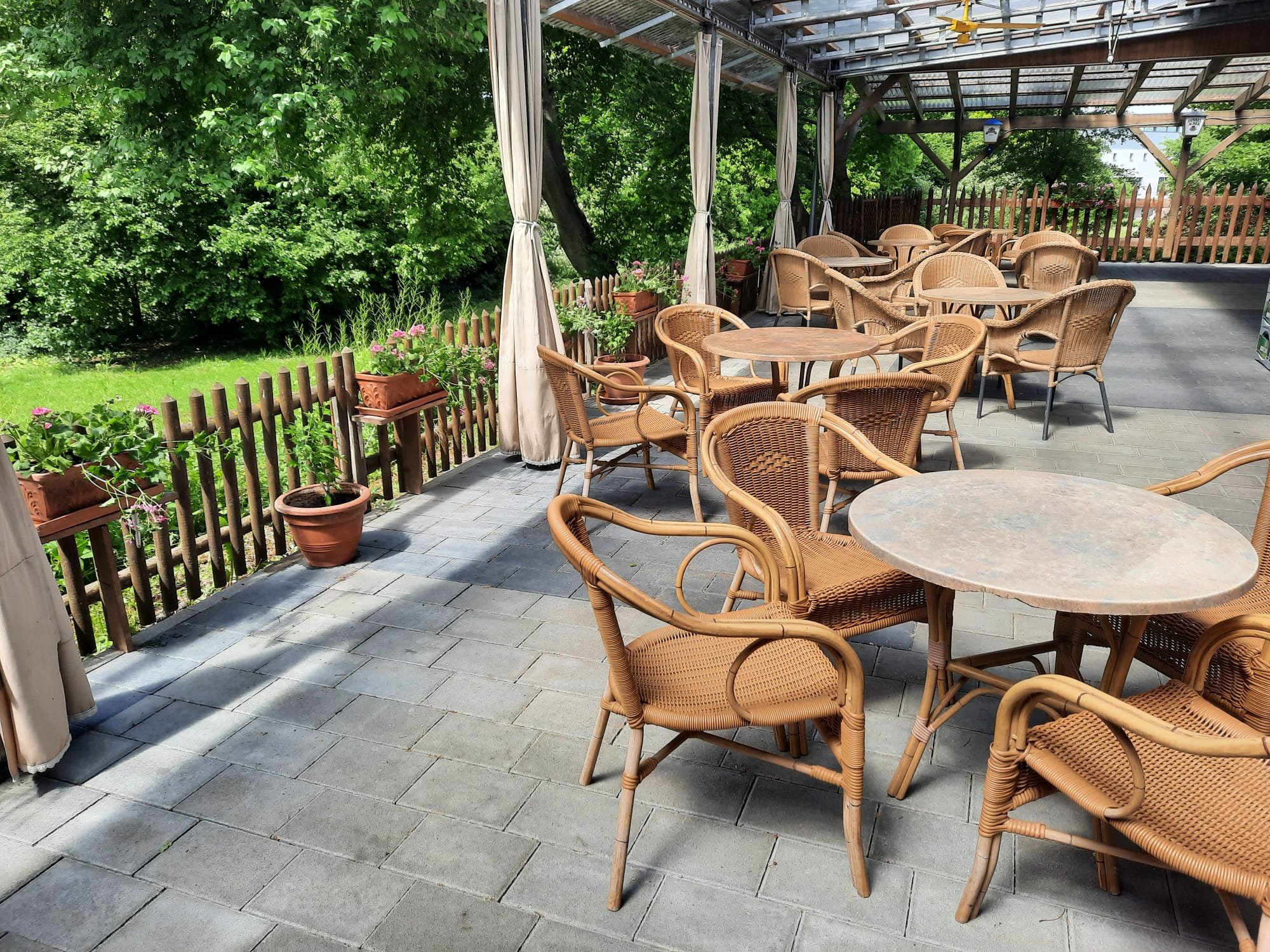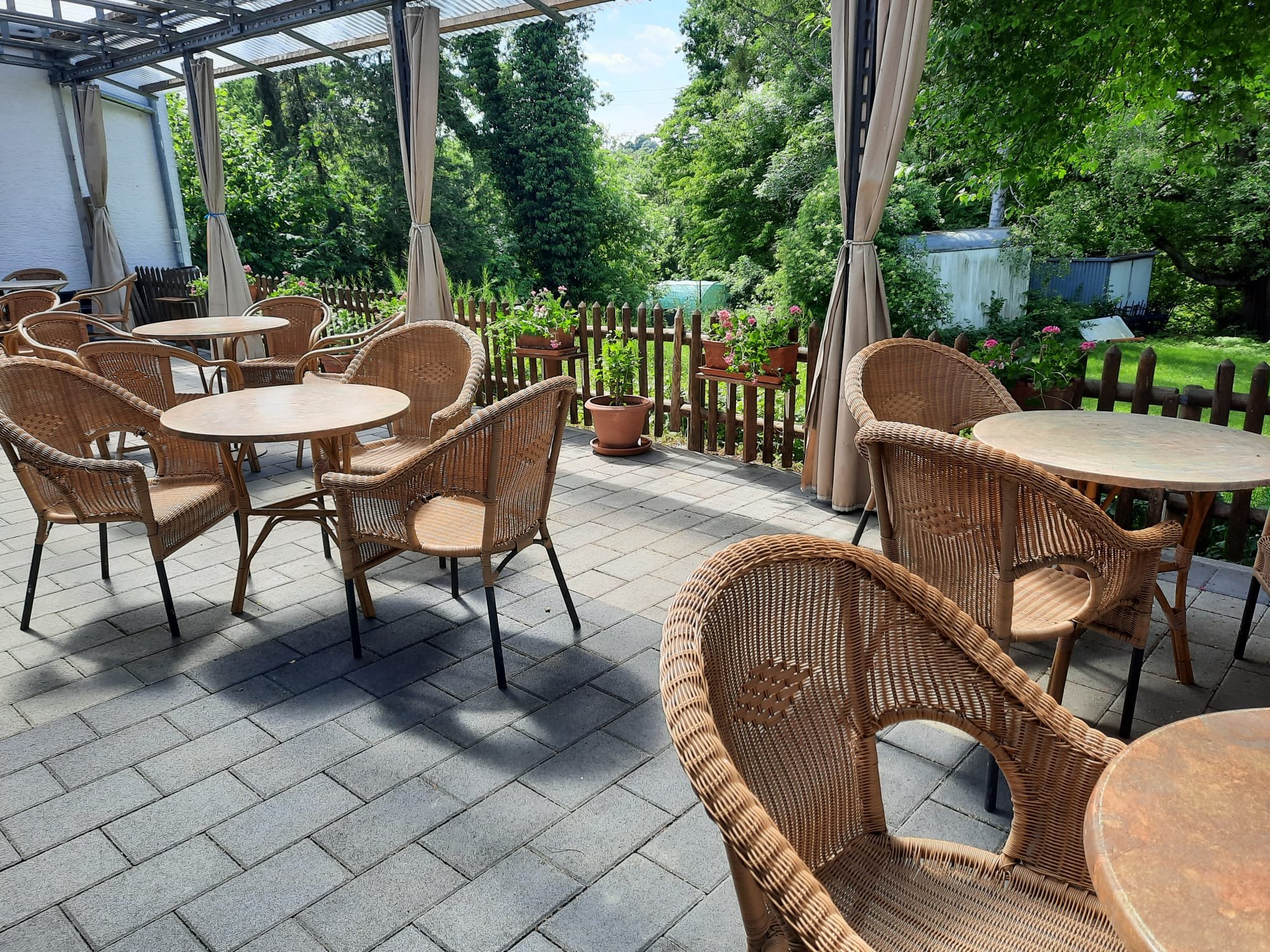 Zusätzlich steht Ihnen bei schönem Wetter eine große überdachte Terrasse mit Grünanlage und Grillmöglichkeit zur Verfügung.